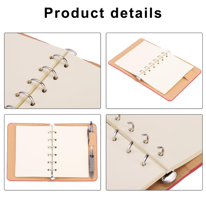- Advantage: The sleek leather exterior offers durability and a luxurious feel, add a touch of elegance to your workspace. Comes equipped with ample paper for note-taking, organizing, and storing important documents. The 6-ring design provides secure placement for the included sheets of paper.