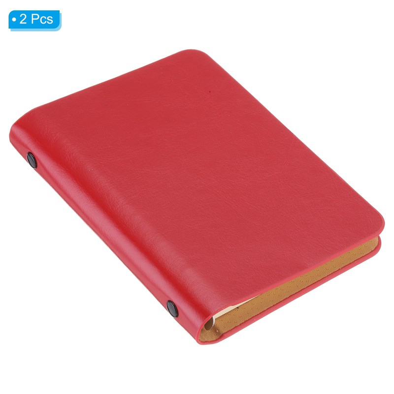 PATIKIL 6 Ring Binder Cover, 2 Pack A7 Leather Notebook Binder Mini Refillable Loose Leaf Personal Planner with 100 Sheets Paper, Red
