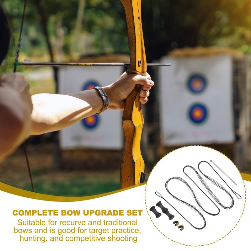 - Advantage: The bowstring, made of durable tire cord material, ensures smooth shots and long-lasting performance with its vibration-absorbing design. Paired with soft silicone finger savers for comfortable grip and brass nock points for precise arrow placement, this set offers a complete upgrade for bow enthusiasts.