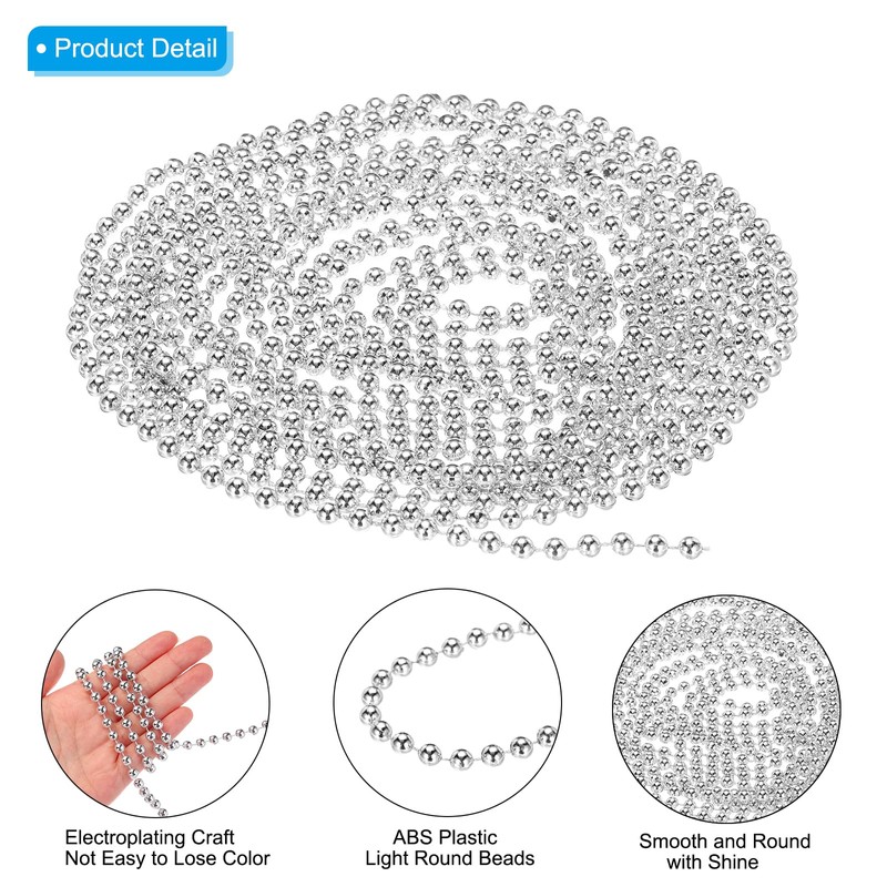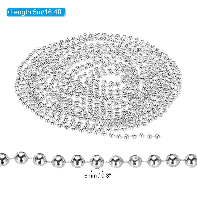 - Specification: Color:Silver; Bead Diameter:6mm/0.3Inch; Bead Length:5m/16.4Ft; Material: ABS Plastic; Packing List: 1 x Pearl Beads Garland