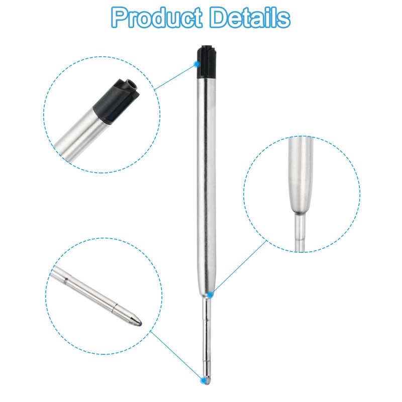 - Specifications: Material: Metal, Color: Black, Tip Diameter: 1.0mm, Medium Point, Total Length: 99mm, Packing List: 6 interchangeable pen refills