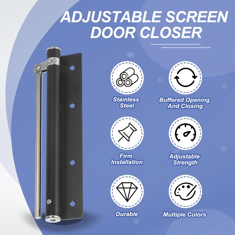 - Application: Storm door spring closer is a device used to automatically close doors after they are opened, preventing them from being forgotten to close or slamming shut. They are suitable for medium-sized doors, wooden doors, metal doors, shed doors, and fire doors in various residential and commercial buildings
