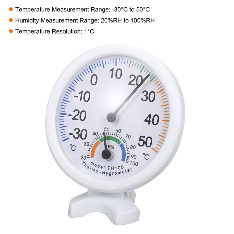 - Advantage: 1. The outdoor thermometer is made of ABS plastic, has good weather resistance and can be used outdoors for a long time. 2. There are air circulation holes on the back of the dial for more accurate readings. 3. This thermo-hygrometer features a Celsius scale and a refined colour-coded dial for easy monitoring of temperature and humidity