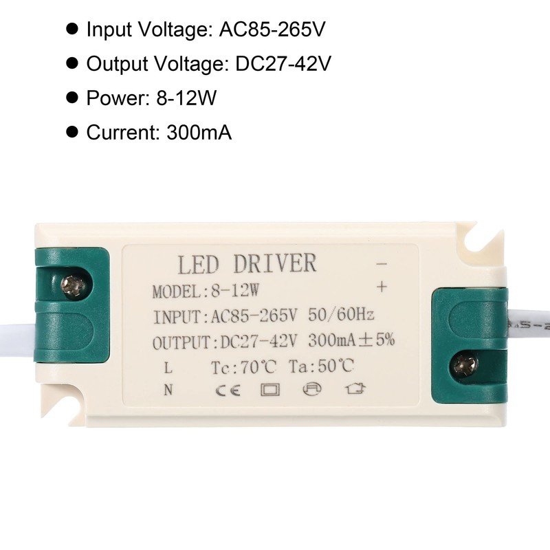 - Specification: Power: 8-12W; Input Voltage: AC85-265V; Output Voltage: DC27-42V; Current: 300mA; Size: 75*32*20mm/2.95*1.26*0.78inch (L x W x T)