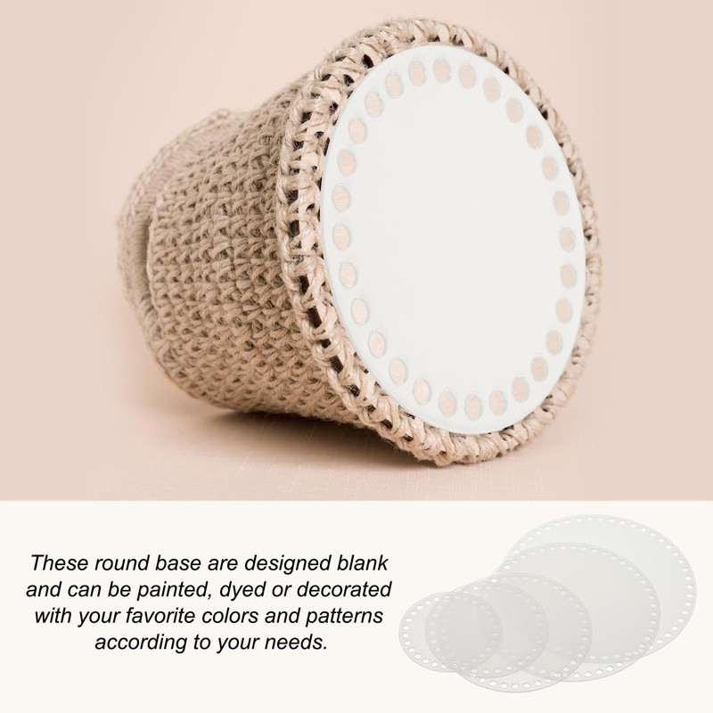 - Material: Acrylic; Style: Round; Size: 20 x 20 cm / 8 x 8 inch; Thickness: 2 mm; Thread Hole: 6 mm; Package Includes: Acrylic Crochet Basket Base x 4 Pack
