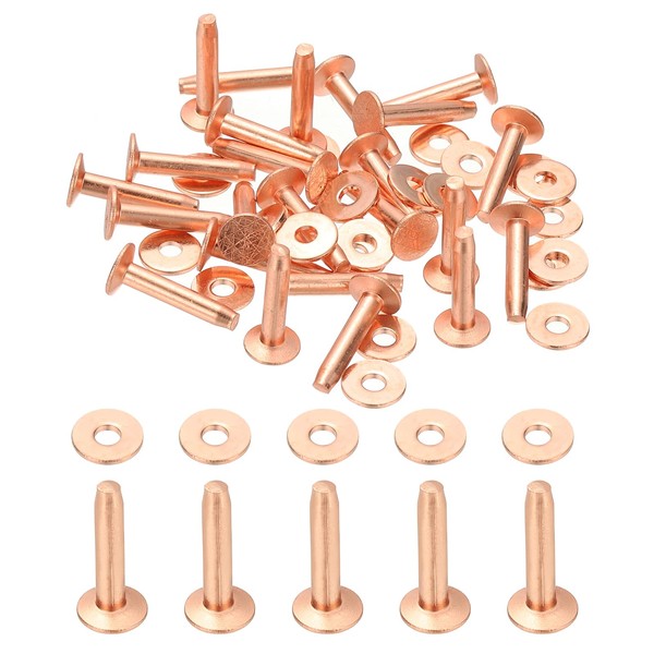 PATIKIL 8x3.3x17mm Leather Rivets and Burrs, 24 Sets Leather Rivets and Washers Copper Fastener Metal Studs Posts for Leather Craft, Belts, Wallets, Collars, DIY Crafts