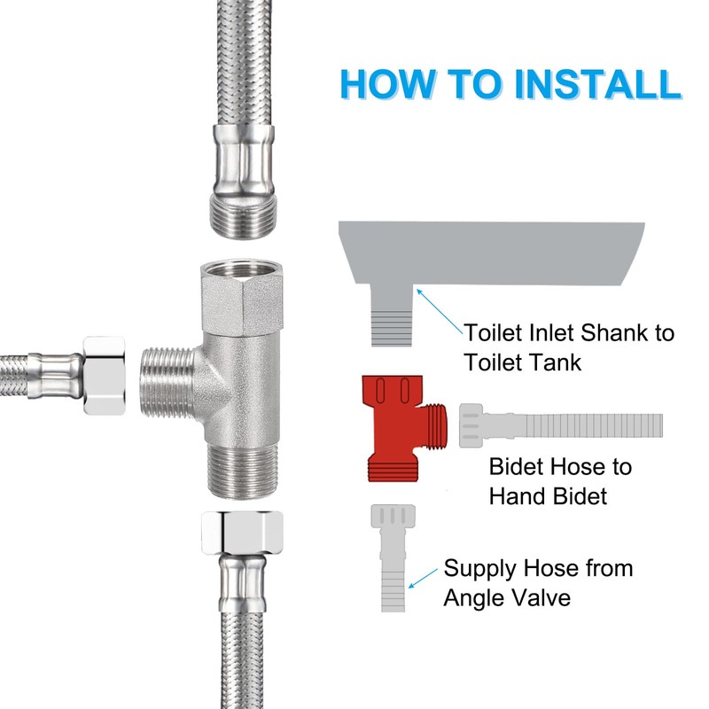 - Advantage: Surface of bidet adapter is nickel-plated to avoid scratches and rust, prolonging its service life. With one inlet and two outlets design, you don't need to worry about affecting the water flow of the toilet after installing the T-connector