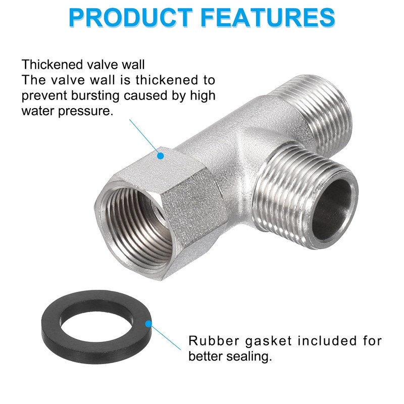 - Application: The tee fitting is a versatile solution for dividing the water supply into different pathway. It is suitable for home shower, bathroom, kitchen, balcony and other facilities or pipe connections