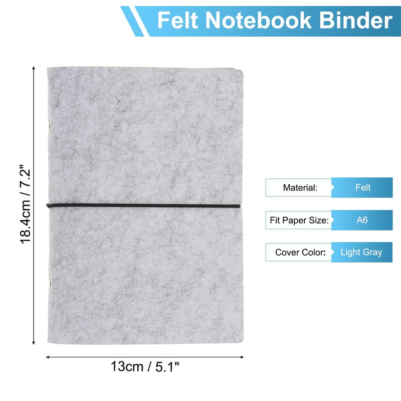 - Specification: Size: 18.4 x 13 cm / 7.2 x 5.1 Inch (L*W); Fit Paper Size: A6; Material: Felt; Cover Color: Light Gray; Packing List: 1 Pcs x A6 Binder Covers