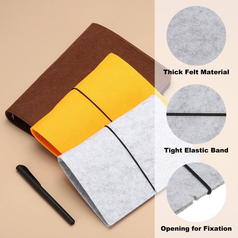 - Advantage: The notebook cover surface is made of thickened felt material, which is wear-resistant durable, and soft to the touch. It comes with an elastic cord and an opening for fixing the cord, which prevents the cord from shifting and the items in the book from falling out, while also increasing the ability to hold more items. The felt binder cover has a sturdy metal clip inside that is not easy to break, closes seamlessly and fits neatly, providing stability without damaging the inner pages.