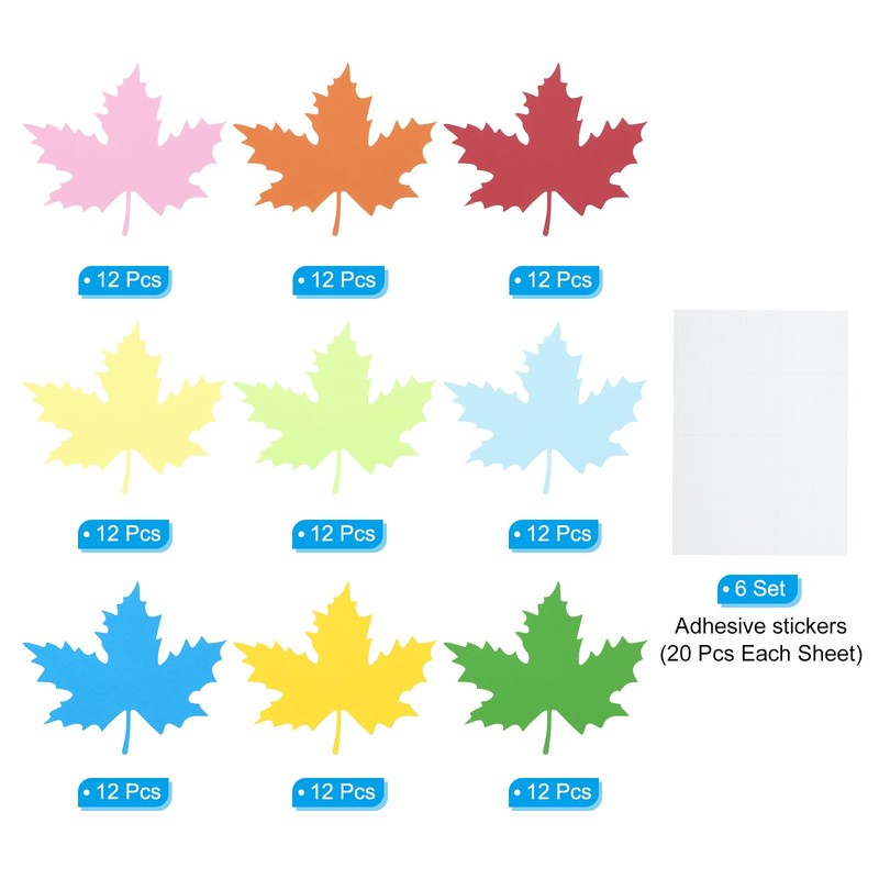 PATIKIL Ahornblatt-Ausschnitte, 108er Pack Papierblätter, Bunte Blattausschnitte für Klassenzimmerdekoration DIY-Bastelprojekt