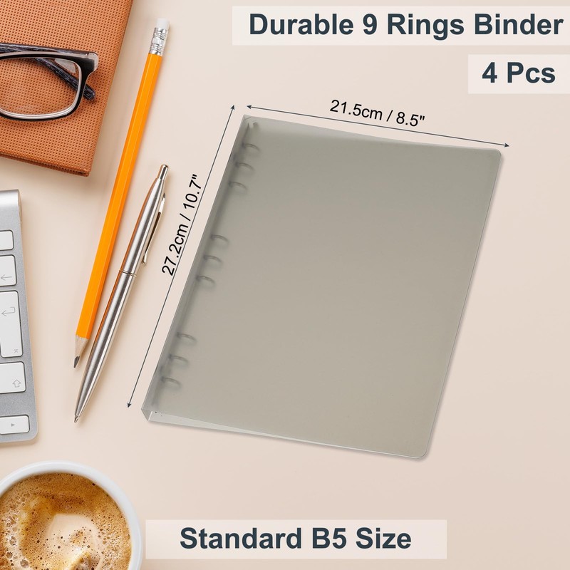 - Specification: Size: 27.2 x 21.5cm/10.7 x 8.5inch(L*W); Fit Paper Size: B5; Material: PP; Cover Color: Brown; Rings Color: Silver Tone; Packing List: 4 Pcs x B5 Binder Covers.