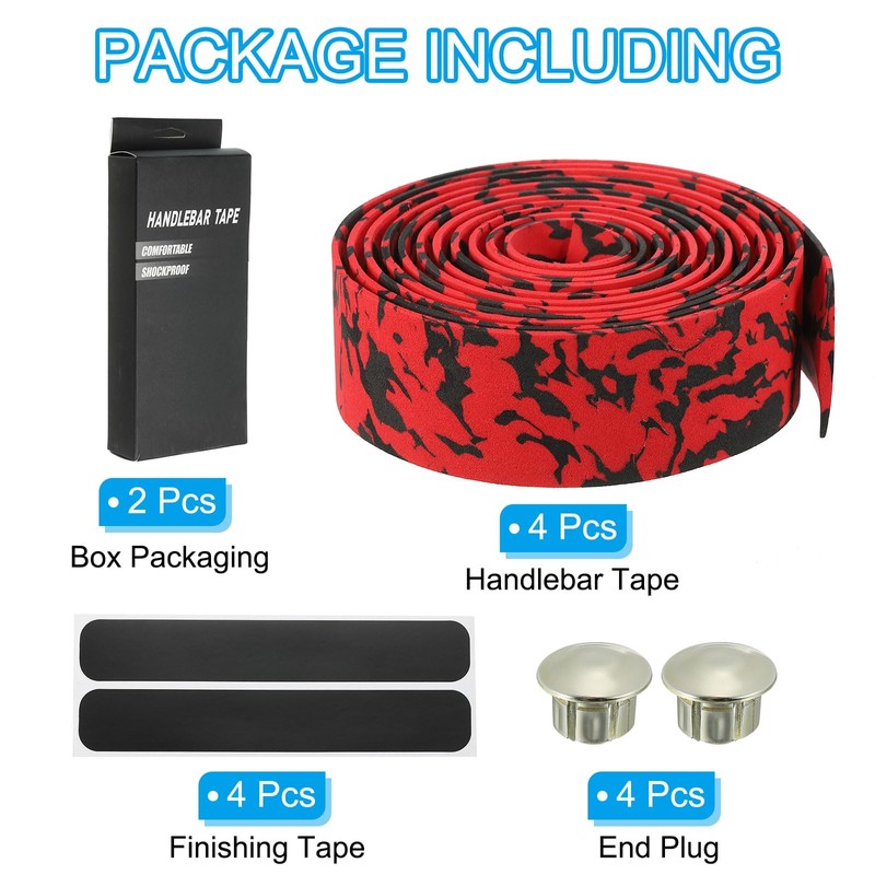 - Advantage: 1. Made from premium EVA material, this bike handlebar tape offers excellent anti-slip,shock-absorbing properties, which are breathable and tough and will not break easily. providing a secure grip even in wet or sweaty conditions. 2. The tape's soft and cushioned texture enhances comfort during long cycling, relieving hand, and enhancing overall control.
