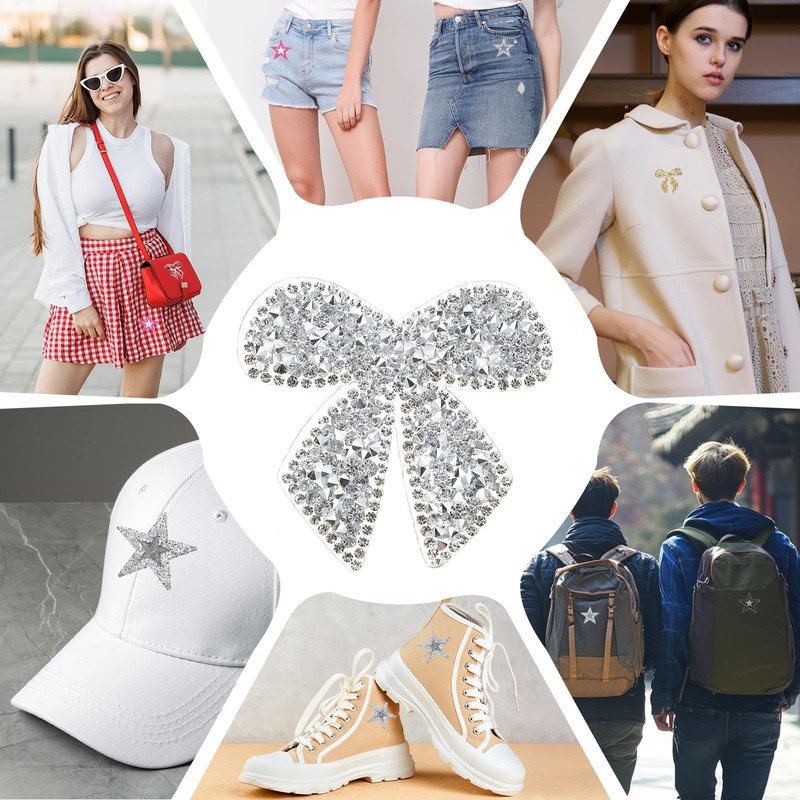 - Application: These cute rhinestone patches can be used to repair worn parts or broken areas of clothes, spots, that cannot be washed off, or used for clothing accessories to decorate shoes, hats, bags, pants, T-shirts, etc. They can also be used to make DIY handicrafts to meet daily needs. This beautiful rhinestone applique will make your items more attractive and personalized.