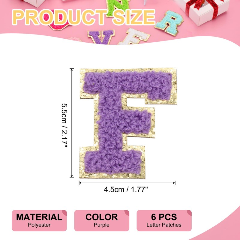PATIKIL Buchstaben-Aufnäher, 6 Stück, Anfangsbuchstabe F, selbstklebender Aufnäher, bestickter Stoff, 5,5 cm, Alphabet-Aufkleber für Kleidung, Hüte, Make-up, Taschen, DIY, Lila