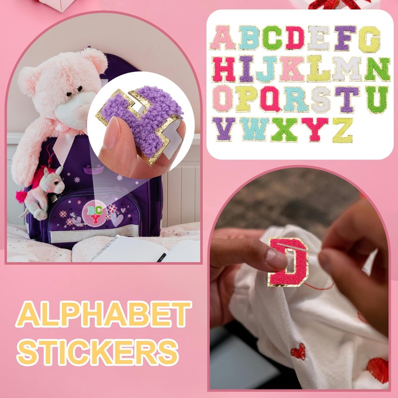 Diese Stoffbuchstaben sind selbstklebend. Sie können sie einfach abziehen und dort aufkleben, wo Sie möchten, Ihren Namen personalisieren oder lustige Worte erstellen.