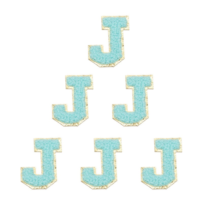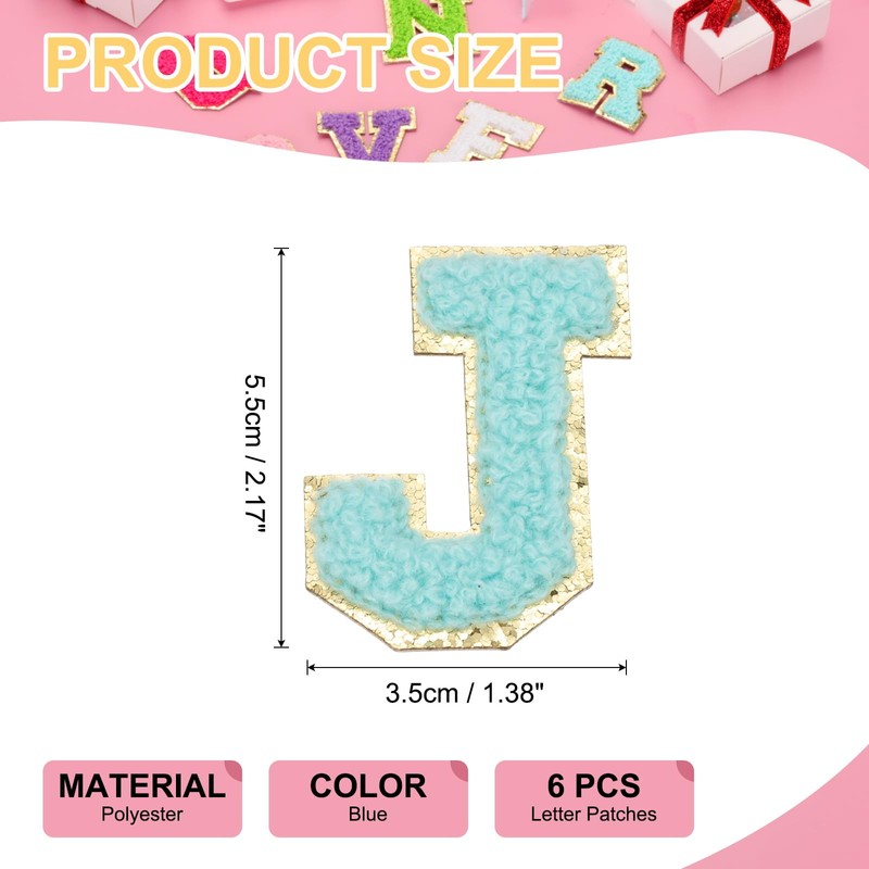 PATIKIL Buchstaben-Aufnäher, 6 Stück, Anfangsbuchstabe J, selbstklebender Aufnäher, bestickter Stoff, 5,5 cm, Alphabet-Aufkleber für Kleidung, Hüte, Make-up-Taschen, DIY, blau