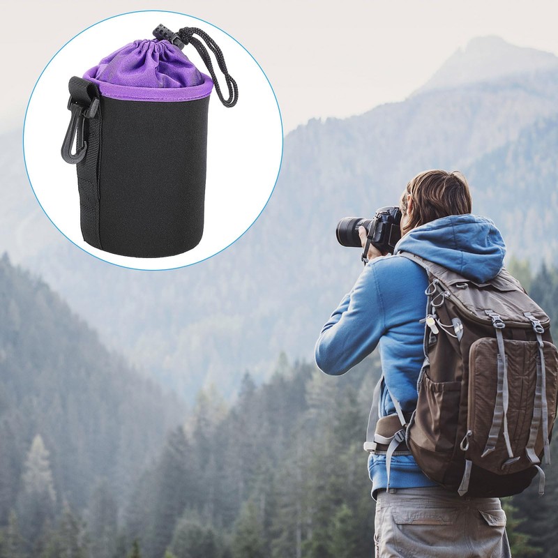 - Advantages: 1. The lens pouch with carrying strap and hook allows you to carry the bag in your hand or hang it on your backpack and belt. 2. The drawstring design protects the lens from accidental drops, and the 5mm thick lens bag with neoprene fleece is waterproof, wear-resistant and shockproof, providing protection from bad weather, accidental bumps and scratches.