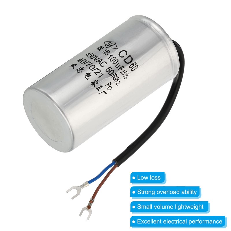 - Application: The CD60 running capacitor is suitable for the start-up of single-phase motors with frequency of 50Hz and 60Hz, such as air compressors, pressure washers, air conditioners, washing machines, motors, generators, HVAC, fans, etc.