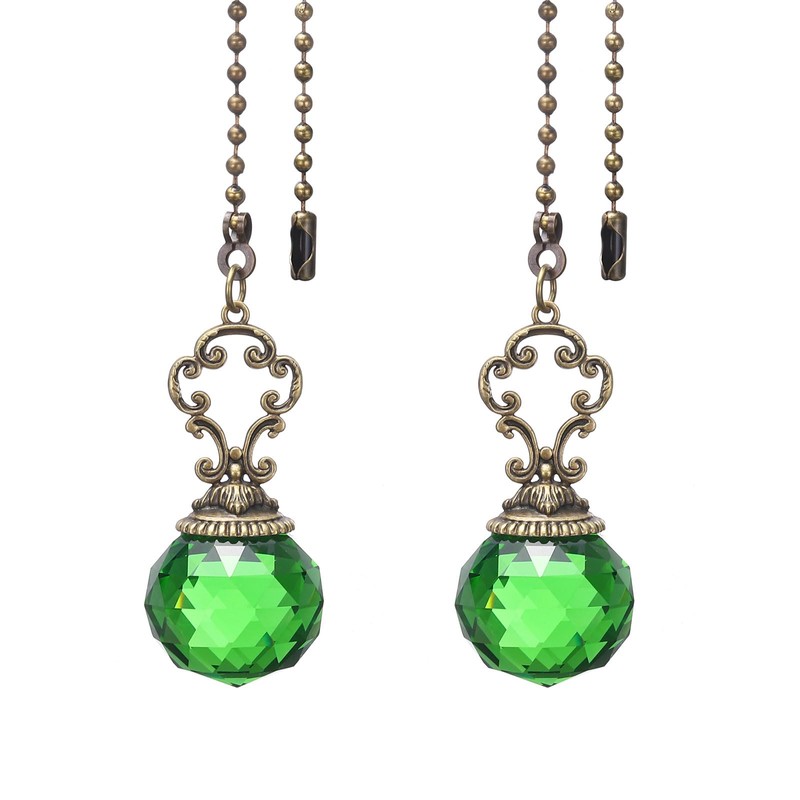 PATIKIL Ceiling Fan Pull Chain, 2 Pack 12" Decorative Crystal Pendant Chain Extender Charm Extension Pull String for Ceiling Fans Light Lamp, Green