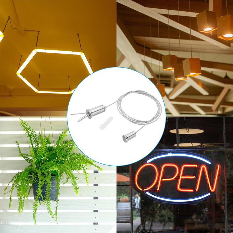 - Color: Chrome; Material: Carbon Steel; Surface Finish: Electroplating; Rope Length: 1m/3.3ft; Range of Application: 1.2-2.0mm Steel Wire Rope; Packing List: 8 Sets x Ceiling Hanging Wire Cable Kit