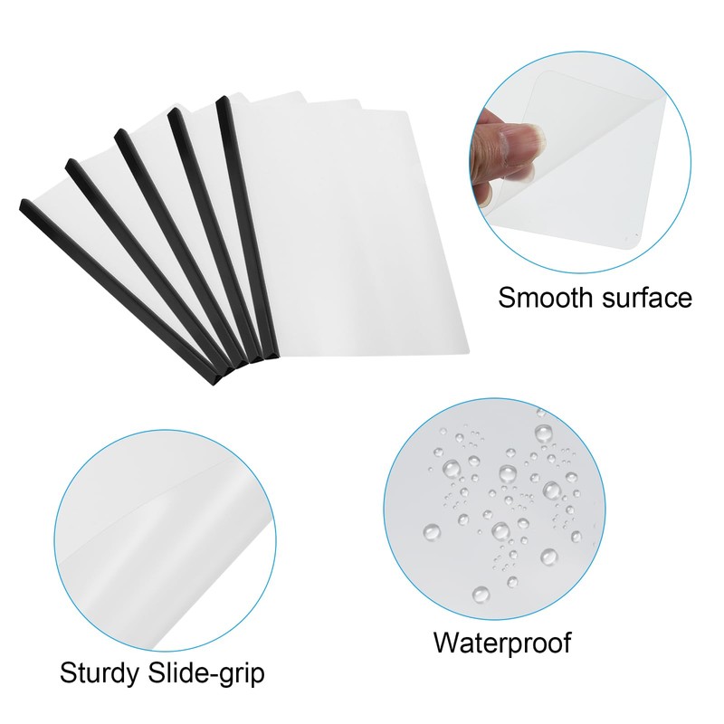 - Advantage: The slide-grip resume covers are made of transparent PP material, with a flat and smooth surface, good flexibility, not easy to deform, and can be used repeatedly. The slide-grip has large capacity which can hold many papers, and is not easy to fall off. The slide-grip resume covers can clearly display the contents of the report, with high transparency, which is conducive to finding the required documents.