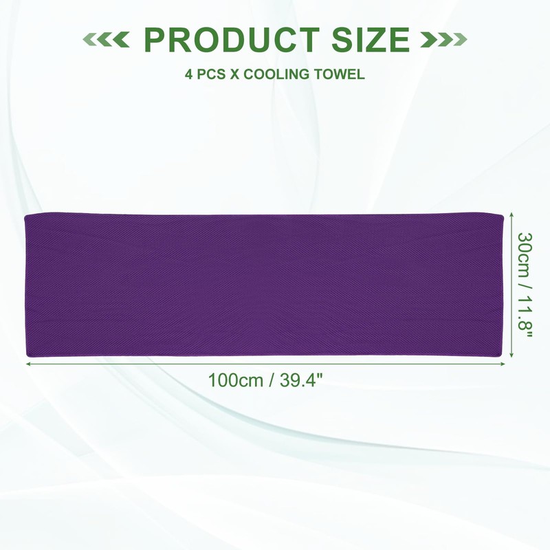 - Color: Purple; Total Size: 100 x 30 mm / 39.4 x 11.8 inch (LxW); Packing List: 4 Pcs x Cooling Towels
