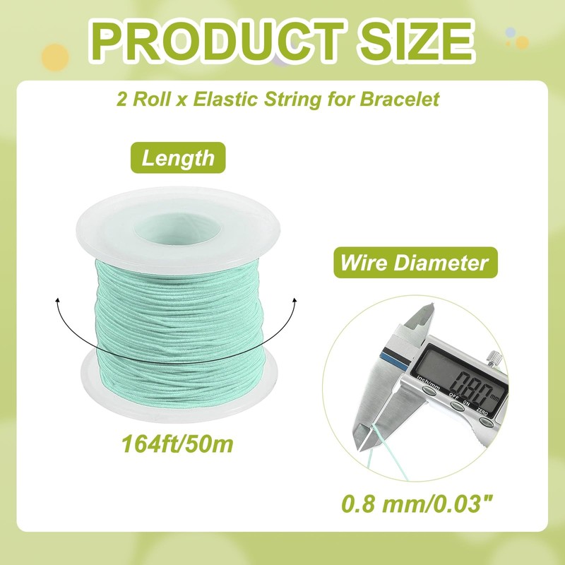 - Color: Lake Green; Material: Polyethylene, Rubber; Length: 164 ft/50 m; Wire Diameter: 1.5 mm/0.06 Inch; Package Content: 2 Roll x Elastic String for Bracelet