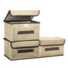 PATIKIL Fabric Collapsible Storage Bin 10.2 x 7.5 x 6.3 Inch, 3 Pcs Foldable Storage Box Cube with Lids and Handle Organizer Container for Home Bedroom Closet Clothes, Beige