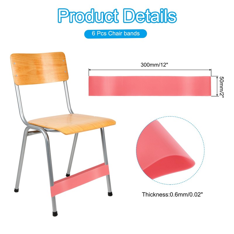 - Color: Light Pink, Material: TPE Material, Size: 12 × 2 × 0.02" inches/ 300 × 50 ×0.6 mm (L*W*T), Packing List: 6× Chair Bands