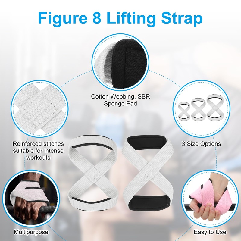 - Advantage: The figure-8 weightlifting strap design, made of cotton webbing and SBR sponge pads, is durable, provides a firm grip, and is very comfortable to use. These dead lift straps will enhance your weightlifting technique and reduce premature grip tire, making your workout safer.