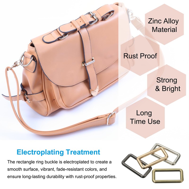• Application: Rectangle rings buckle are perfect for a wide range of DIY projects, including webbing straps, belts, bags, backpacks, handbag, purses, pet accessories, and more. Special popular in DIY crafts and projects for creating custom straps, handles, and decorative elements