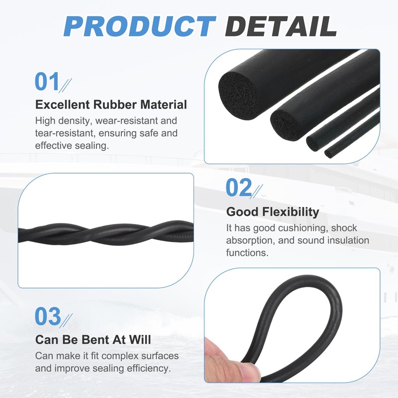 - Specification: Material: EPDM Rubber; Color: Black; Size: 4.6m x 10mm / 15.1Ft x 0.39 inch ( L * Dia ); Package List: 1 Pcs x Silicone Foam Seal Strip