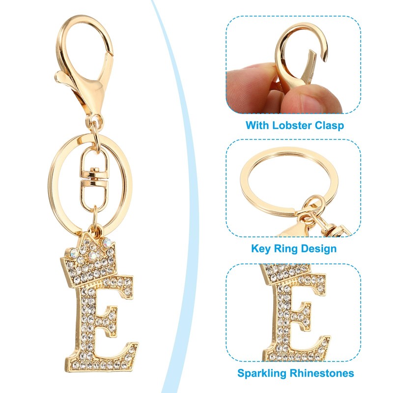 PATIKIL Initial Letter Keychain, Letter E Crown Design Charm with Crystal Diamonds Decorative Alphabet Pendants for Bag Backpack DIY Craft, Gold Tone