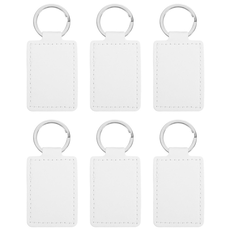PATIKIL Leather Blank Keychains, 6Pcs Rectangle Leather Keychain Blanks Double Side Laser Engraving Key Chains for Embossing, UV-Printing, DIY Craft, White