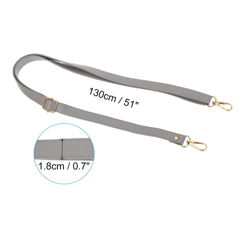 - Color: Grey, Gold; Material: Artificial Leather; Measure Range: 130cm / 51 inch; Width: 1.8cm / 0.7 inch; Package List: 1 x Leather Purse Strap