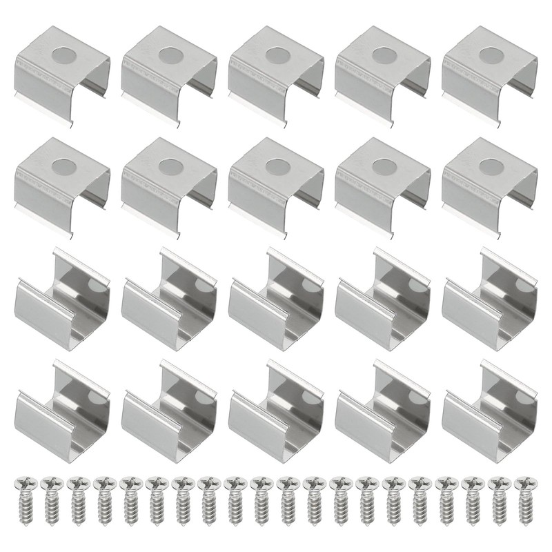 - Color: Silver; Material: Stainless Steel; Total Size: 12mmx11mmx10mm / 0.47"x0.43"x0.39"; Inner Width: 10mm / 0.39"; Suitable for LED Strip Size: 10mm to 11mm; Mounting Hole Dia.: 4mm / 0.16"; Packing List: 60pcs x LED Strip Light Clips, 60pcs x Screws