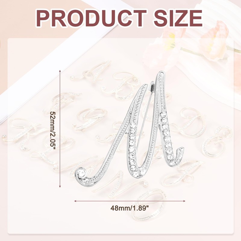 - Specification: Color: Silver Tone; Material: Alloy, Rhinestone; Total Size: 52x48mm / 2.05x1.89" (L*W); Package List: 1 Pcs x Letter Brooch Pins