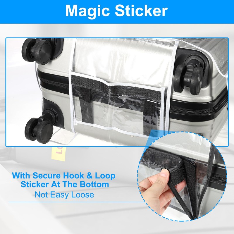 - Advantage: The luggage protector is made of PVC material, designed to shield your luggage from moisture and dirt effectively. It adopts a smooth surface that is easy to clean, and resistant to wrinkling and breakage. This protector ensures your luggage remains well-protected and enhances the convenience of your travels