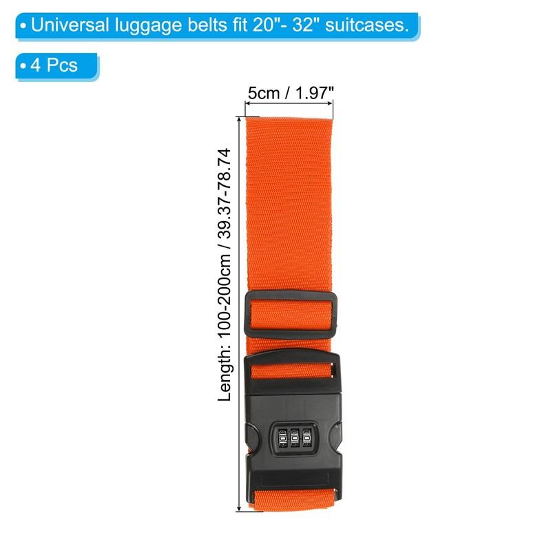 - Color: Orange; Material: Polypropylene; Width: 5cm / 1.97inch; Length: 100-200cm / 39.37-78.74inch; Packing List: 4Pcs x Luggage Bands
