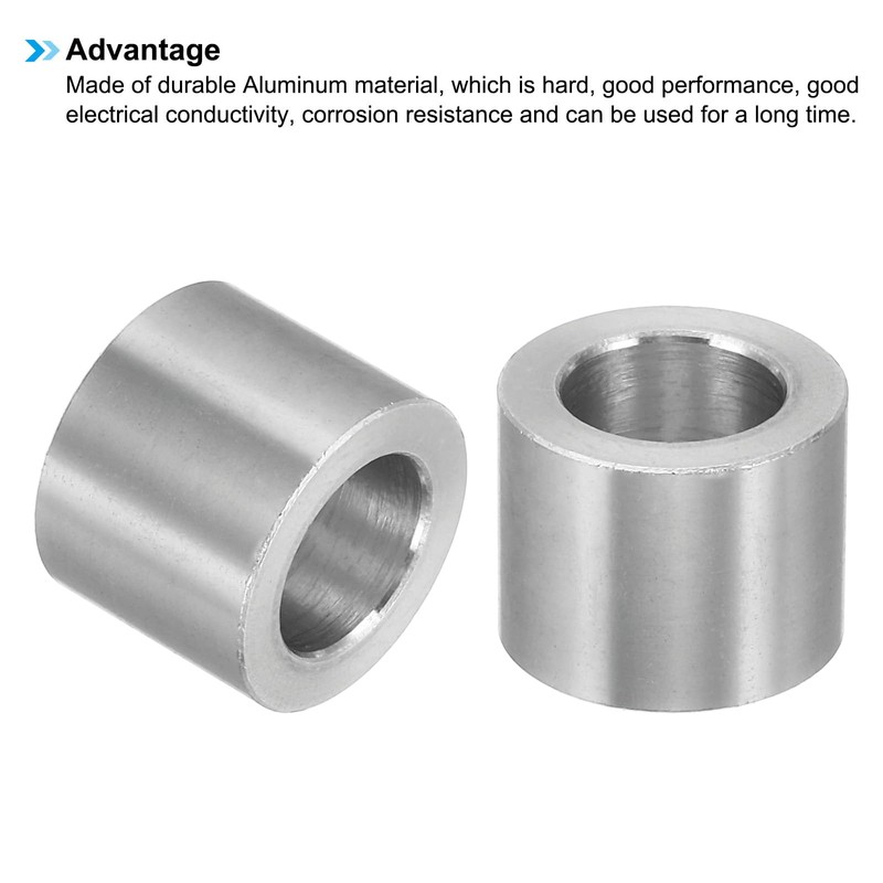 - Material: Aluminum; Color: Silver; Compatible Screw Size: 1/2" or M12 Screws Bolts; Size: 12.7 x 20 x 15.9 mm / 0.5 x 0.79 x 0.63 inch (ID*OD*L); Packing List: 10 x Round Spacer Aluminum
