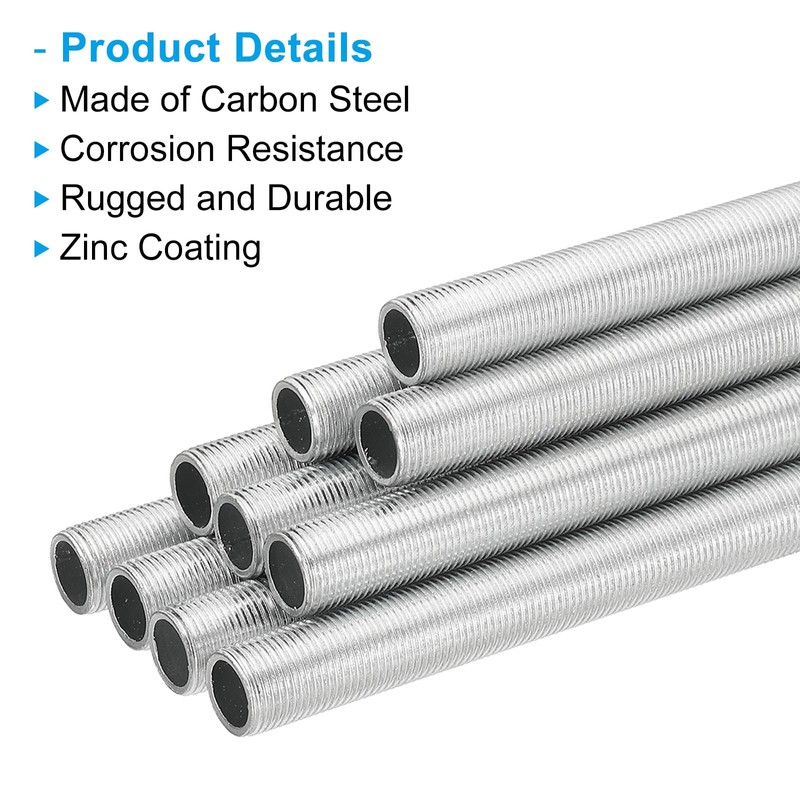 This lamp pipe is made of carbon steel and has a surface treated with galvanization, a refining process, uniform pitch, anti-corrosion, and rust-proof. It can work in wet environments, providing good durability and stability.