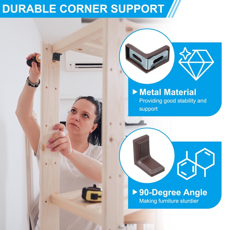 - Application: This 90-degree plastic corner bracket is a crucial angle joint fastener that keeps furniture components securely in place. It is suitable for repairing or reinforcing wooden boxes, shelves, tables, cabinets, drawers, vanities, screens, wardrobes, beds, chairs, window, and more.