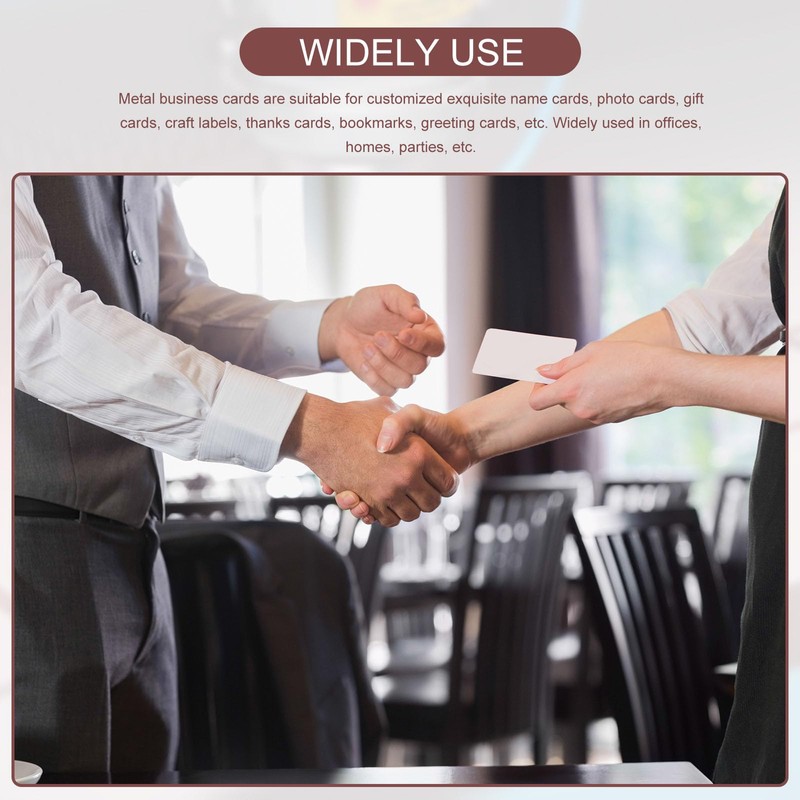 - Wide application: these cards are suitable for offices, apartments, parties, etc. Metal business cards are suitable for any personalised style, e.g. Name cards, photo cards, gift cards, craft tags, metal signs, thank you cards, bookmarks, greeting cards, etc.