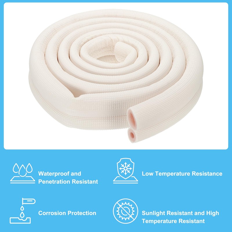 The outer layer of the foam tubing is made of XPE material, effectively insulating against heat, sunlight, moisture, and aging. The inner layer is made of E-P-E material, which is waterproof and with high insulation performance, it can reduce heat loss, power consumption, and noise of AC units. The insulation foam tube is widely used in mini split air conditioners, heat pump equipment, solar energy system, and hot and cold water supply pipes, it also can be used to protect the grip of a variety of equipment, such as fitness equipment, guitar, utensils, and so on.