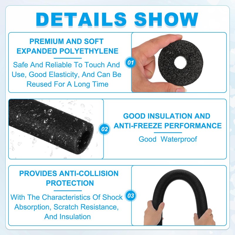 - Application: This foam tube is suitable for use as a good thermal insulation, cushioning, and shockproof material to protect pipes and handles of fitness equipment. It is widely used to reinforce and protect various pipes, such as furniture, heating, hot water, swimming pools, and beaches, as well as shatterproof packaging for DIY handicrafts