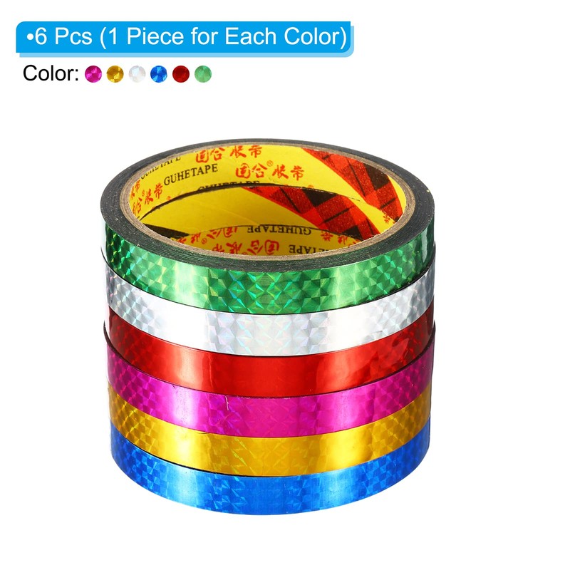 PATIKIL Prism Tape 0.5 Inch x 32.8 Yards, 6 Pack Holographic Metalized Reflective Self Adhesive for DIY Art Craft Wrap Wall Decoration, Assorted Color