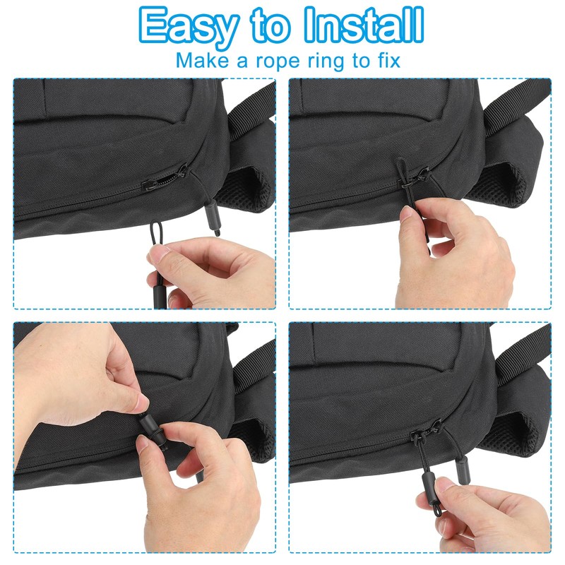 - Replacement zipper pull cord is an excellent helper for zipper extension. It can be easily fixed on all zippers and is suitable for all bags, luggage, handbags, purses, camping tents, jackets, clothes, key rings, etc.
