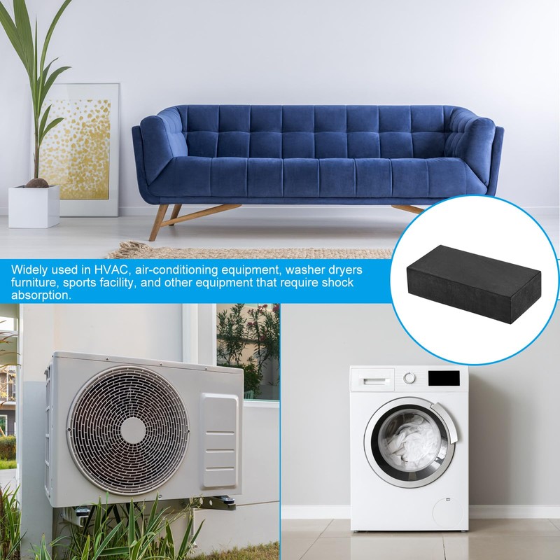 - The rubber vibration dampers can effectively reduce vibration and noise for your equipment and are widely used in HVAC, air conditioners, washing machines, dryers, furniture, sports facilities and other equipment that requires shock absorption.