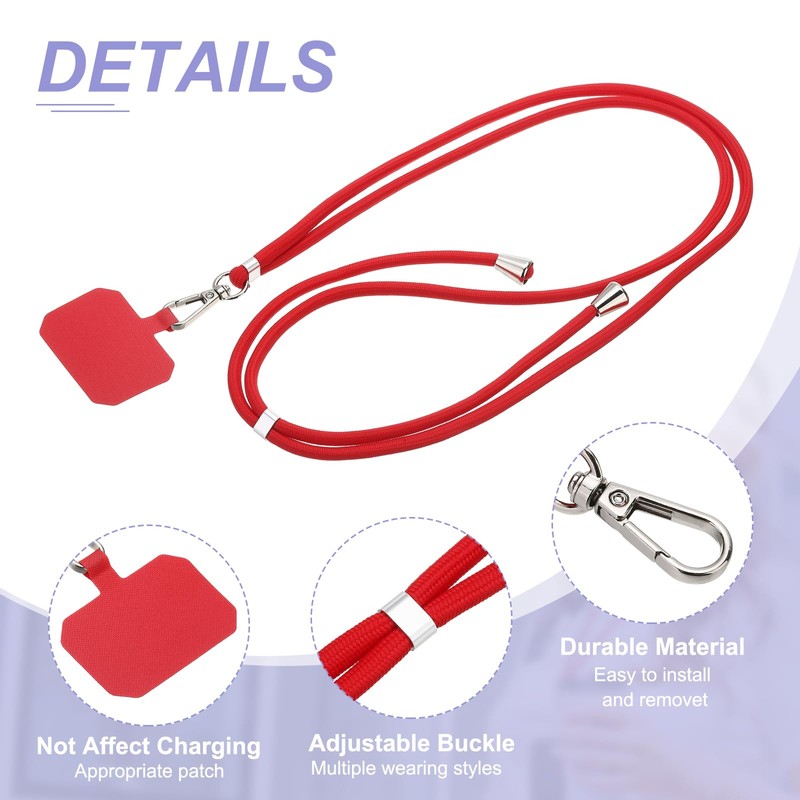 PATIKIL Smartphone Schlüsselband, Universelles Handy-Lanyard Verstellbarer Crossbody-Gurt-Patch mit Nackenband Passt für die meisten Smartphones, Rot